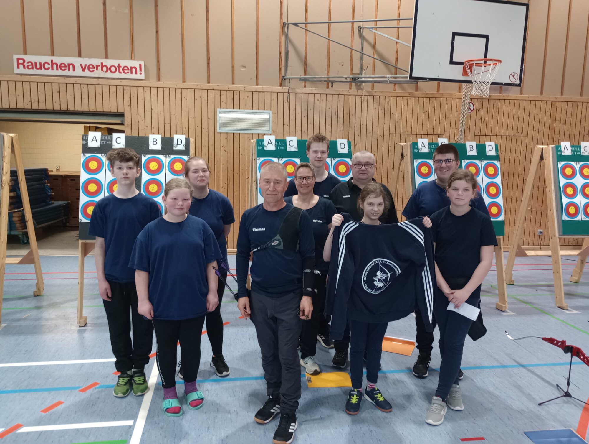 In diesem Jahr waren wir mit 11 Teilnehmerinnen und Teilnehmern beim Hallenturnier des SV Süderneuland vertreten. Dabei konnte sich jeder unserer Vereinskameraden auf dem „Treppchen“ platzieren. Von Links: Luca Böhmann (2. Platz – 131 Ringe), Leevke Böhmann (1. Platz – 190 Ringe), Fraya Böhmann (1. Platz – 158 Ringe), Thomas Munk (1. Platz – 435 Ringe), Sylvia Brinkmann-Albers (2. Platz – 359 Ringe), Thorben Albers (1. Platz – 349 Ringe), Andreas Fette (2. Platz – 430 Ringe), Mikaela Taurat (2. Platz – 199 Ringe), Jason Büttner (2. Platz – 161 Ringe), Juliane Zurwellen (1. Platz – 314 Ringe). Nicht im Bild: Helmut Neeland (2. Platz – 311 Ringe) und Deike Füllbrunn (2. Platz – 388 Ringe). Wir gratulieren allen zu diesen sehr erfreulichen Ergebnissen!